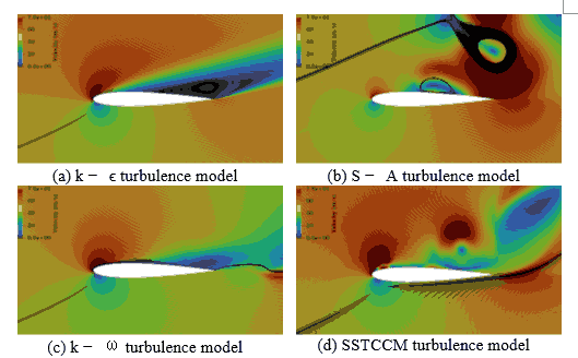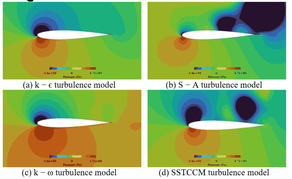 Pressure contours at α = 18° is shown in Figure 4. Under pre-stall conditions, all models produce similar pressure distributions. As the angle of attack approaches the stall region, the SSTCCM model demonstrates improved accuracy in predicting pressure distributions, resulting in reduced errors in aerodynamic force predictions. With the exception of the k-ϵ model, all turbulence models were performing good compared to the experimental measurements.