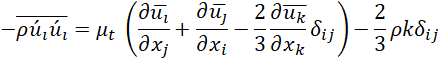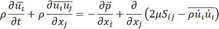 After applying the time averaging technique, a new additional term appears on the RHS of equation (5), which is known as Reynolds stress tensor . Therefore, an additional equation must be implemented to calculate the new term