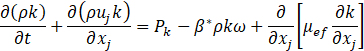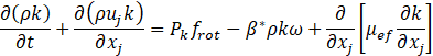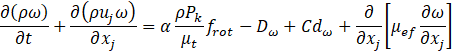 In the SSTCCM model, the production term in equations (9) and (10) is modified by multiplying it by a rotation function to account for the rotation and curvature effects, and hence they have rewritten as follows: