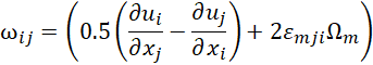 where εmji is the Levi-Civita and Ω_m is the component of the angular velocity vector due to rotating reference frame. Based on the numerical tests performed in reference [13], the values of the empirical constants in equation (14), cr1, cr2 and cr3 are set to 1.0, 2.0 and 1.0.