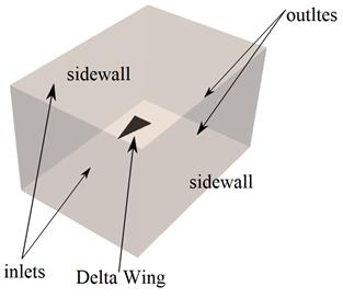 The delta wing configuration used in this study is that of Polhamus [20]. The computational domain is demonstrated in figure 6.