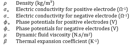 Table 2. Thermophysical properties of lithium-ion battery [8]