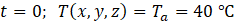 The initial temperature of the battery and PCM is set to the ambient temperature of 40 °C. The PCM is initially in a solid phase, and the velocity field is set to zero.