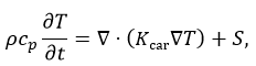 where S represents the heat generation rate with a constant value of 100 kW·m−3. The thermal conductivity tensor Kcar in the equation (1) must be implemented via transformation from local spiral (r,ϕ,z) to cartesian (x,y,z) coordinates: