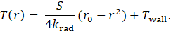 By standard approach, it can be analytically found the particular solution of temperature distribution along the radius inside the computational domain as