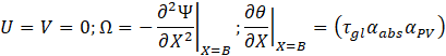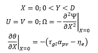 The transfer of heat through vertical walls subjected to heating may be described in terms of the Nuselt number, which represents a ratio of the conductive transfer of heat to the convective flux through the refrigerant. The following formula may calculate the local Nusselt number on the active plate with the photovoltaic (PV) cells at the coordinate X=0.