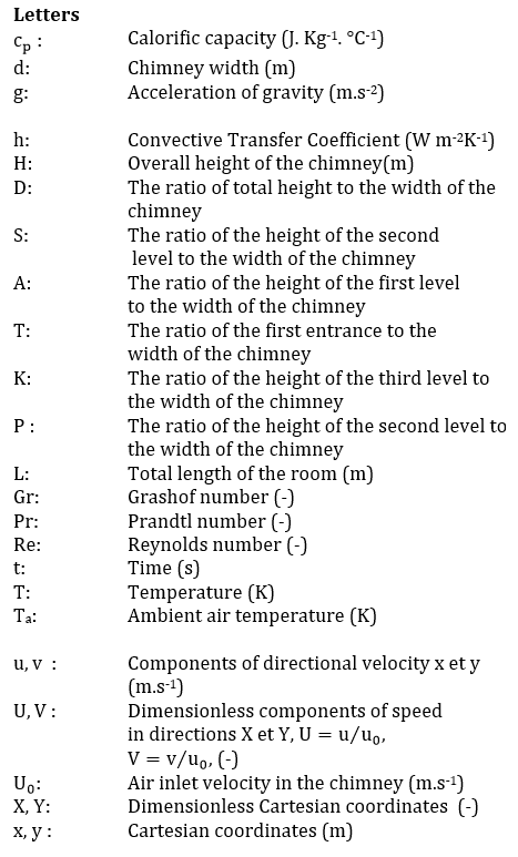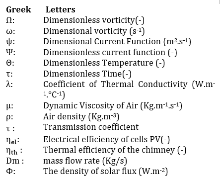 The differential equations that govern the transfer of heat and mass in a solar chimney are solved using the finite difference method. To circumvent potential instabilities commonly observed in mixed convection problems, a second-order upwind method was implemented for the convective components, whereas the central difference methodology was adopted to approximate the first- and second-order derivatives of the diffusive terms. The algebraic equations (2) and (3) were integrated using the Thomas algorithm. At each iteration, the successive point sub-relaxation method was applied to the Poisson equation, Eq. (4). It was determined that the optimal sub-relaxation coefficient was 0.8 for the 51×101 grid previously utilized in this study. The solution obtained at each time step exhibits iteration convergence. To confirm the existence of a stable solution, a condition must be satisfied.