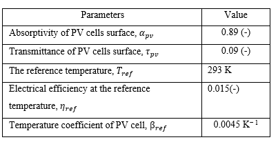 former ΘPV is the average temperature of the PV, T0 is the temperature of the air leaving the chimney and Ti is the temperature of the air entering the chimney.