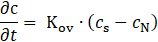 where Kov represents the overall mass transfer coefficient (s–1), cs is the saturation concentration reached when the system attains steady state (g/l), and cN (g/l) is the ammonia nitrogen concentration in absorption solution at time t (s).