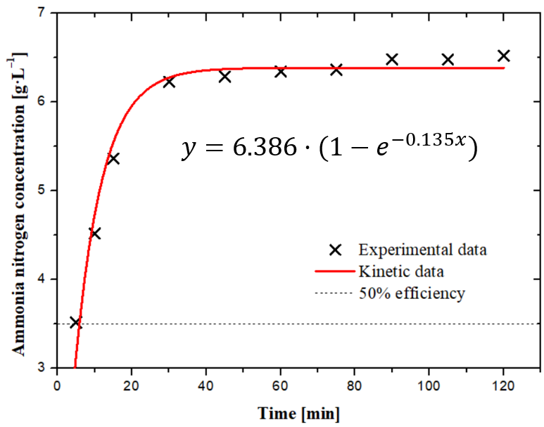 High ammonia nitrogen concentrations in various types of wastewaters cause significant negative consequences, not only for the environment but also for the quality of life of animals and plants. Liquid effluents (such as digestate) after anaerobic digestion often contain high ammonia concentrations, which can lead to contamination when used as fertilizer in agriculture. The volatilization of NH₃ is the primary factor contributing to its increased concentration in the atmosphere, and several studies have confirmed that 90% of total atmospheric ammonia originates from agriculture [1], [2]. Additionally, applying large amount of digestate to various kinds of soil can cause ground and groundwater contamination [3]. And for this reason, many European countries have legislation that limits the use of these effluents as fertiliser per unit area [4].