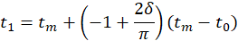 By choosing tf=2tm-t0, the dates t1 and t2 when the flux is zero on the west and east inclined wall, are respectively :