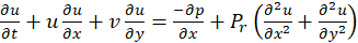 and p, which represent the velocity, temperature, and pressure, respectively, they are written as follows in cartesian plane (x,y):