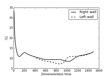 Furthermore, the first decrease of the curves corresponds to the state where transfers occur through weak convection. A single-cell flow is present. As convection develops, the sudden variations show the change of state with the birth of multicellular flows or a reorganization of the flow with the disappearance of cells.