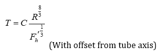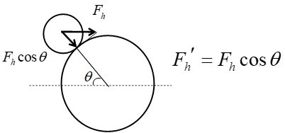 Here, Kz1 is the resistance coefficient for the following droplet when the following droplet is far from the leading droplet and there is no interaction between the droplets, whereas Kz2 is the resistance coefficient for the following droplet when the relative velocity of the two droplets becomes zero after their apparent contact. Kz1 and Kz2 are coefficients that take into account the offset from the tube axis. As shown in Figure 4, the hydrodynamic force in this case can be denoted by Fhʹ, which is equal to Fh cosθ. Here, θ is the angle between the vertical straight line and the line joining the centers of the leading and following droplets. The coalescence time T can be expressed by Eq. (12) in a similar manner to Eqs. (8) and (9).