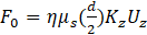 Here, F0 is the hydrodynamic force exerted on a single droplet in a creeping flow through a tube, η is defined in Eq. (4), μs is the viscosity of the surrounding fluid, d is the undeformed diameter of a single droplet, and Kz and Kp are the resistance coefficients [8]. In the reference, Kz and Kp are represented as Rz and Rp. Uz is the velocity of a single droplet, U0 is the maximum velocity of the parabolic pressure-driven flow, and β is the viscosity ratio of the droplet to that of the surrounding fluid. In Kz and Kp, the center-to-center distances between the droplets and tube axis are taken into consideration. The form of Eq. (3) is similar to that proposed by Haberman and Sayre [15]. Haberman and Sayre replaced the resistance acting on a sphere moving with velocity U in a creeping flow with the maximum velocity V through a cylindrical tube, with the resistance acting on a sphere fixed in a flow with a maximum velocity of V - U at the tube axis, where the tube wall moves at velocity U in the opposite direction to the flow. They expressed the resistance acting on the sphere in this case with the following equation.
