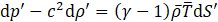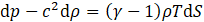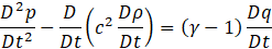Here, to improve the clarity of the solution, we express the entropy and temperature in terms of pressure and density in Eq.7. The linearized equation of motion and the equation of state are then defined as Eq.8 and Eq.9, respectively. By substituting Eq.8 and Eq.9 into Eq.7 and rearranging the terms, we finally obtain Eq.10.