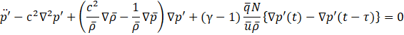 Dowling [7] and Hedge at al. [8] considered the phenomenon using a wave equation that accounts only for the heat source term generated by combustion, which appears as the first term on the right-hand side.