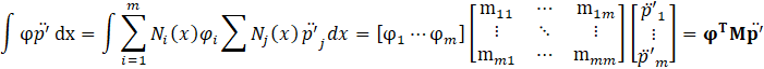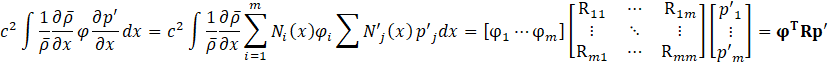 Here, since φ is an arbitrary function, for Eq.24 to hold, it must satisfy the condition given by Eq.25. Eq.25 ensures that the discretized system satisfies the weak form for arbitrary test functions, leading to the FEA formulation for acoustic pressure evolution.