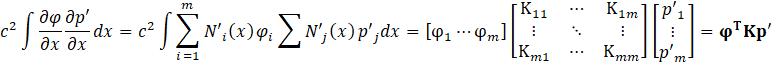 Where Kij=c2∫N'i(x)N'j(x)dx. The fourth term can be expressed as shown in Eq.20.