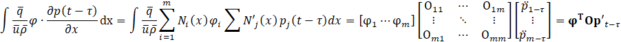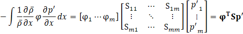 Where mij=∫Ni(x)Nj(x)dx. The second term can be neglected because both ends of the flow path are acoustically open, resulting in p'=0. The third term can be expressed as shown in Eq.19