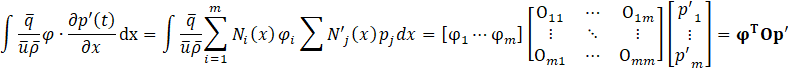 To express the second-order spatial differential equation in a first-order form, Eq.15 is converted into a weak form. By multiplying by an arbitrary function φ with respect to x and integrating over the spatial domain, and then performing integration by parts on the second term, the equation can be written as Eq.16. Eq.16 reformulates the governing equation into a weak form suitable for finite element discretization, allowing for numerical implementation.