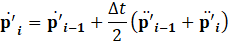Where p'i. represents the unknown sound pressure level at time t, while p'i-t represents the known sound pressure at time t-τ. The relationship between the step number and time is given by t=∆t(i) and τ=∆tT. Expressing the current p'i in terms of the previous step p'i-1, it can be written as Eq.27 and Eq.28.