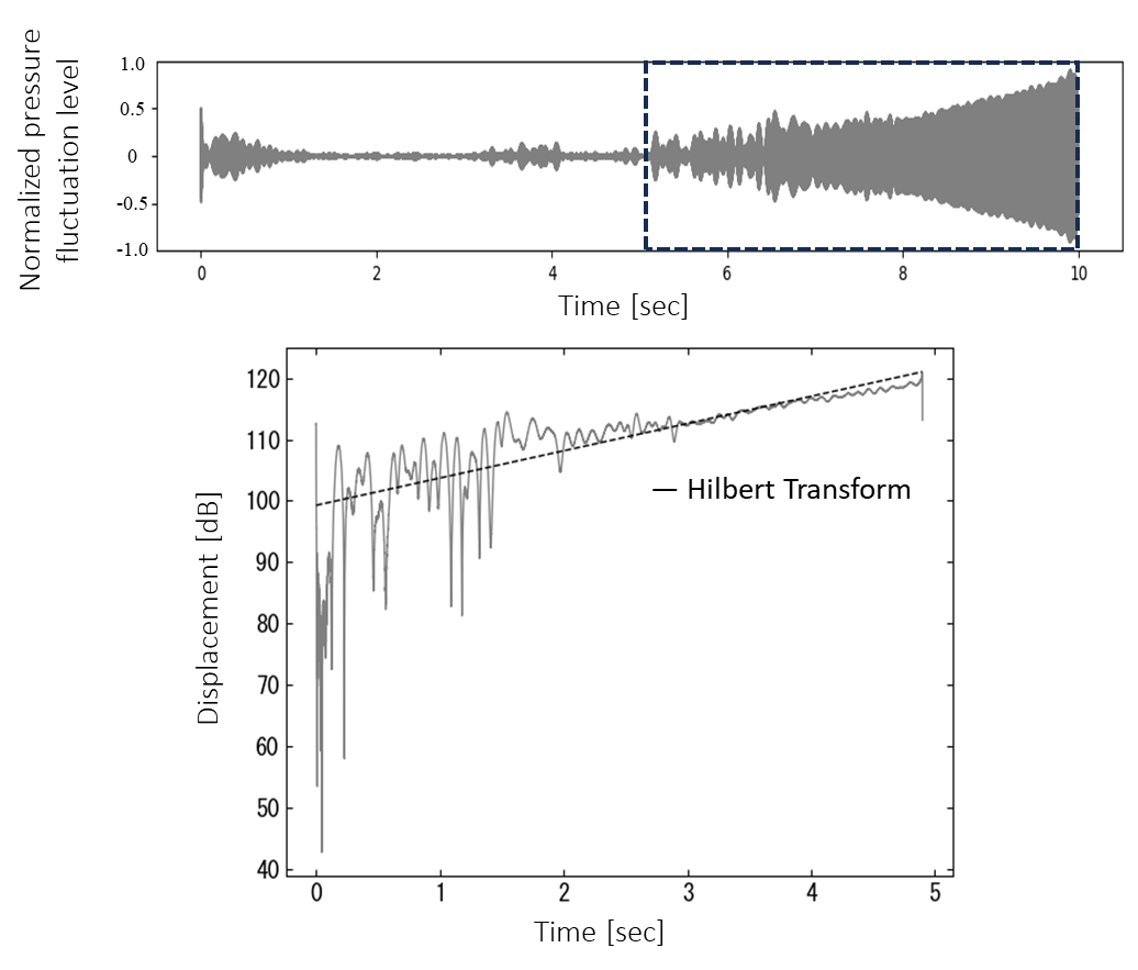 From Figures 5.1 and 5.2, it was confirmed that both the observed and predicted results exhibit a trend of increasing amplitude levels as the air-to-fuel ratio is incrementally increased under the lean combustion conditions described in Section 3.2.