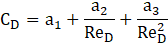 Here, a1, a2, and a3 are constants that work for different ranges of Reynolds numbers as defined by Morsi and Alexander [35].
