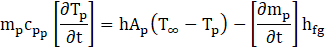 The process of droplet vaporization initiates once the droplet's temperature reaches the specified vaporization threshold, denoted Tvap . Vaporization continues progressively as thermal energy is absorbed, and persists until one of two conditions is met: either the droplet temperature rises to the boiling point, Tbp or all volatile components within the droplet those prone to rapid evaporation have been fully depleted.
