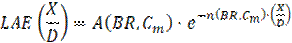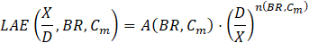 To extend the applicability of the numerical results and enable predictive assessment of mist film cooling performance, an empirical correlation was developed based on the present simulation data. This correlation models the LAE as a function of the normalized streamwise distance (X/D), BR, and Cm. The developed functional form captures near-wall cooling intensity through a pre-exponential factor A(BR, Cm), and downstream decay through an exponent n(BR, Cm), as expressed below: