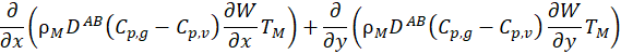 - At the symmetry line (on the right side of the domain, y = H): zero gradient for temperature, axial velocity and air mass fraction plus zero normal velocity