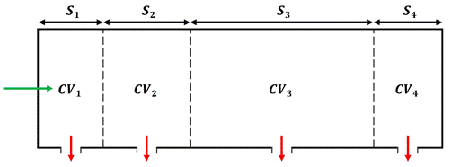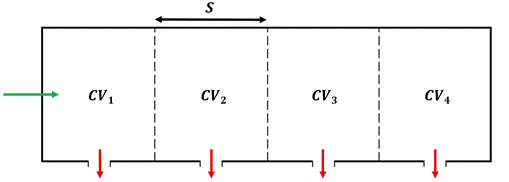 Discrete and continuous mathematical models have also been developed for flow analysis in perforated tubes [20]-[30]. The flow governing equations in these relatively simple one-dimensional models are obtained by enforcing fluid mass and momentum conservations for the control volumes defined around the holes, as shown in Figure 4.
