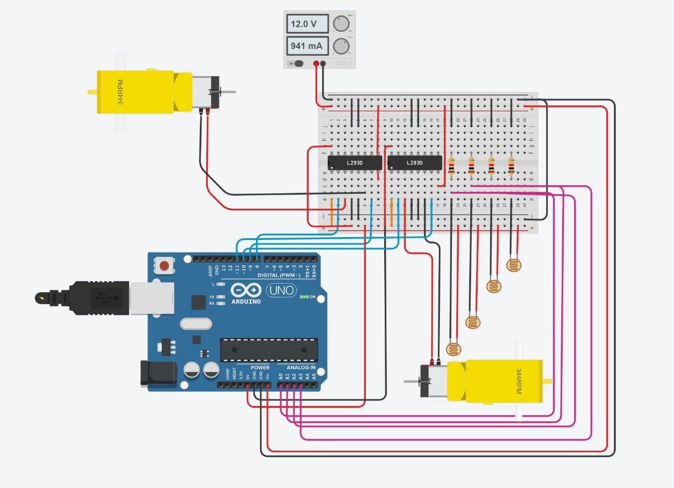 Artificial intelligence (AI) algorithms are employed to analyse data from sun sensors, enabling the precise, real-time determination of the sun's position. Figure 10 shows the circuit model in Tinker CAD, The most powerful feature of tinker CAD is the ability to run a live simulation of your circuit.