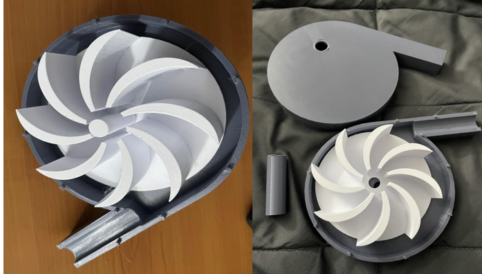 - Assembling Pump a. Submit STL files for 3D printing. b. Assemble pump along with DC Motor. Connect pipes to the pump and water bucket. As shown in figure 8.