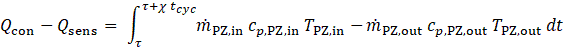 These energy quantities are derived from energy balances over the SZ and the PZ, using the HTF mass flow rates