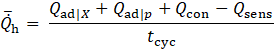 per cycle is calculated by summing the adsorption and condensation heat contributions and dividing by the cycle time: