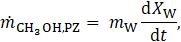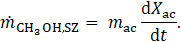 The mass flows of methanol to and from the PZ and SZ, denoted as