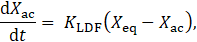 where KLDF is a kinetic time constant, Xeq is the equilibrium loading from Eq. 1, and Xac is the instantaneous loading.