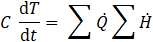 Temperature evolution at each node and in the gas space is governed by the transient energy balance