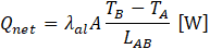 where, A is the cross-sectional area of the solid aluminum plate, TA and TB are the average temperatures at measurement points A and B, and LAB is the distance between the two measurement points.